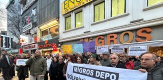 Belediye işçilerinden Migros depo işçileri ile dayanışma eylemi