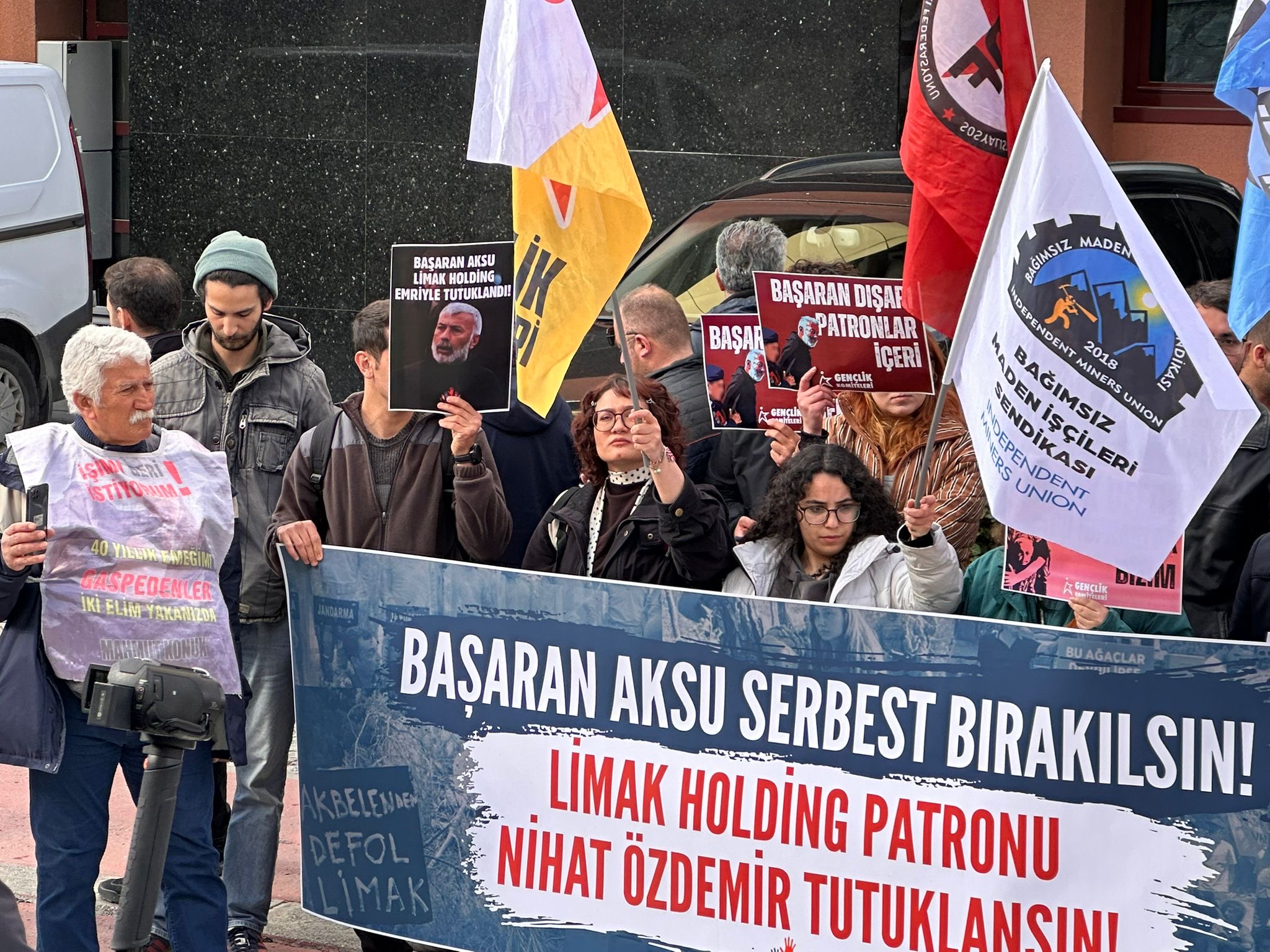 16.00’da Limak Holding önünde toplanan kitle, ‘Başaran Aksu Serbest Bırakılsın’ pankartıyla basın açıklaması gerçekleştirdi.