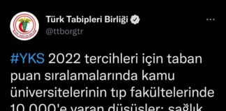TTB’den tıp fakültesi giriş sıralamalarına tepki: “Beyaz çöküş”