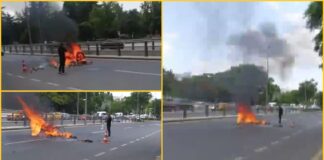 Zamlara isyan eden geri dönüşüm işçisi Meclis önünde arabasını yaktı
