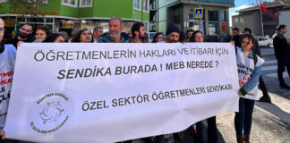 Ögretmenler şemsiyeyle öğretmene saldıran özel okul patronunu protesto etti