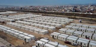 Hatay’da depremzedelerin yaşadığı konteynerkent yağmur suları altında kaldı