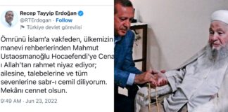 Erdoğan, kadınlar cenazeye gelmesin diyen tarikat liderini “ülkemizin manevi rehberi” olarak...