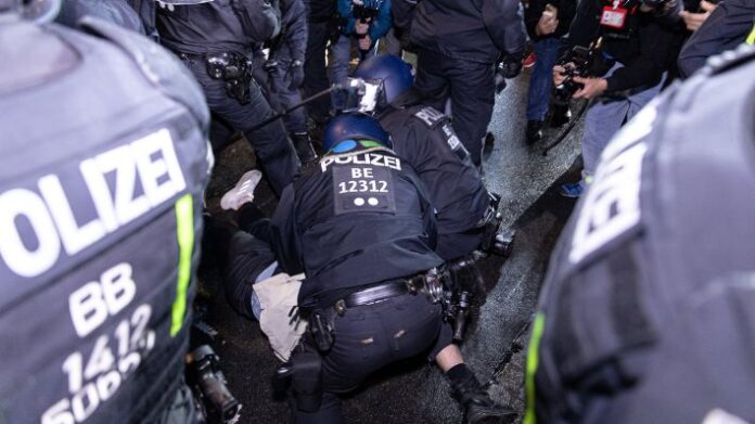 İsrail’in Gazze’de işlediği soykırımı protesto etmek isteyen yüzlerce kişi, gösteri yasağına rağmen Berlin’in merkezinde toplandı. Yetkililer tarafından saatler önce yasaklanan eyleme rağmen, akşam saatlerinde toplanan kalabalığa polis müdahale etti.