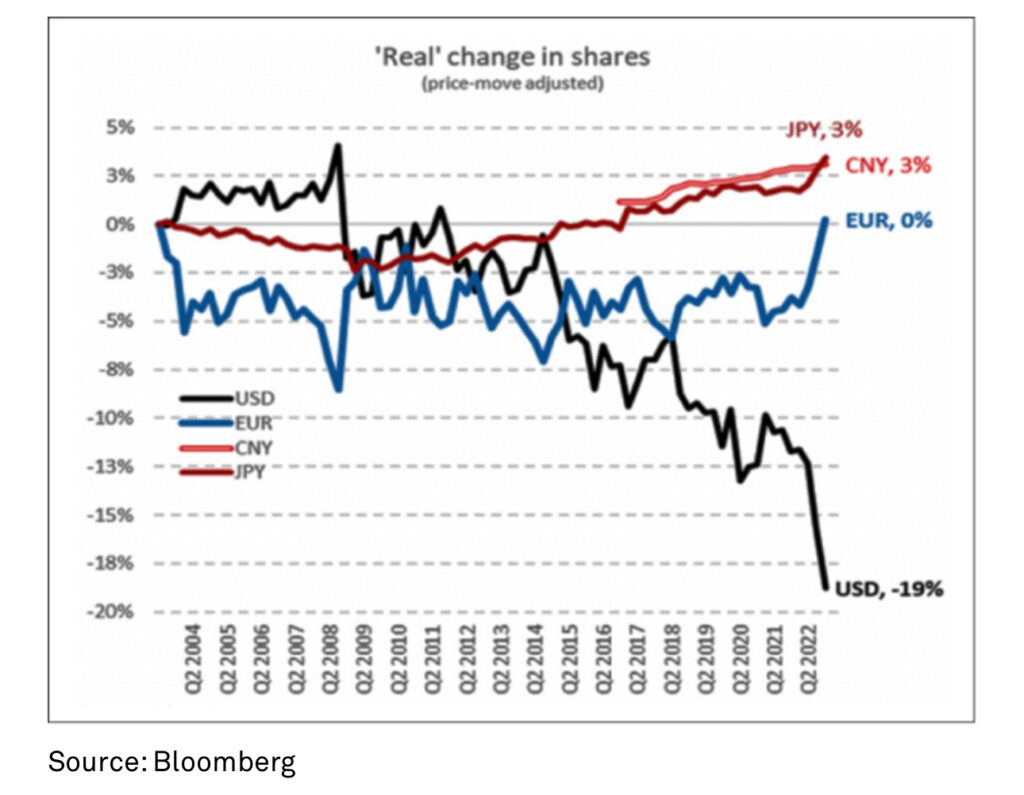 ABD doları bir silah olarak kullanımı, yine onun rezerv para olarak kullanımındaki giderek düşüşe neden oluyor.