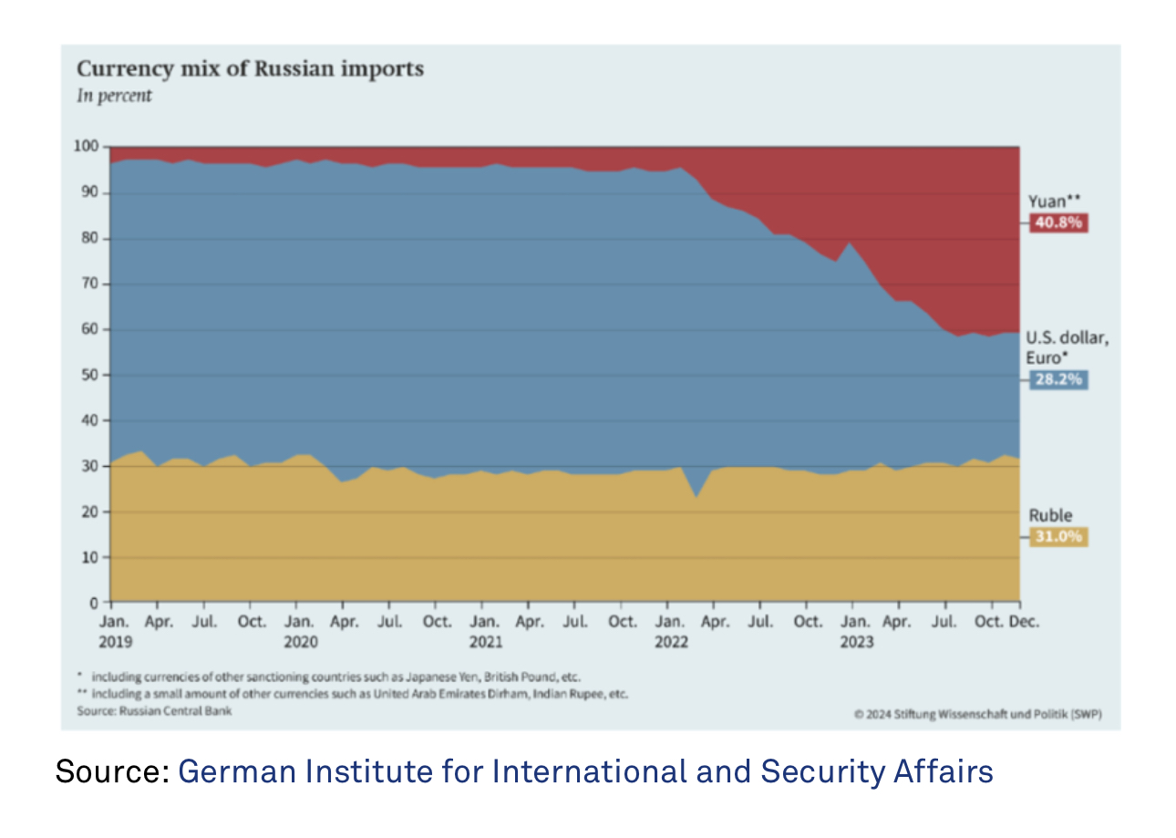 Rusya, yaptırımlar nedeniyle ABD dolarını renminbi ile değiştirdiğinde ise, bu durum başlangıçta bir akım belirleyici oldu.