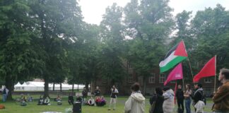 Almanya’nın üniversite şehri olarak bilinen Münster kentinde bulunan üniversite alanında Filistin ile dayanışma eylemi düzenlendi.