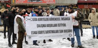 Samsun Gazi Caddesi’nde bugün saat 10:00’da, Türkiye Gıda Sanayi İşçiler Sendikası basın açıklaması gerçekleştirdi. Yoğun kar yağışı altında TAB gıda kurye emekçilerinin...