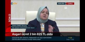 Aile, Çalışma ve Sosyal Hizmetler Bakanı Zehra Zümrüt Selçuk, asgari ücretin brüt 3 bin 577 lira 50 kuruş, net 2 bin 825...