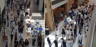 AKP’li Cumhurbaşkanı Erdoğan’ın Haziran ayında açtığı Başakşehir Çam ve Sakura Şehir Hastanesi’nde çalışan sağlık emekçileri, ek ödemelerle ilgili eylem yaptı.