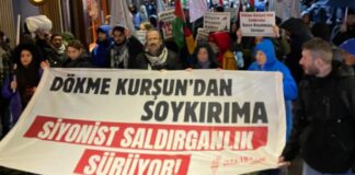 İstanbul Üsküdar’da Filistin Eylem Komitesi’nin çağrısı ile bir araya gelen kitle “Filistin’e özgürlük, İsrail’e boykot!” sloganlarıyla Şifa Hamamı önünden yürüyüşe başlayarak Üsküdar...