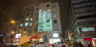 Hrant Dink’in silueti katledilişinin 14. yılında Sebat Apartmanı’na yansıtıldı