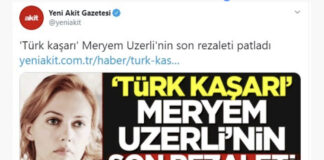 Gerici Yeni Akit, Muhteşem Yüzyıl isimli diziyle ünlenen oyuncu Meryem Uzerli için "Türk kaşarı", “veled-i zina” gibi terbiyesiz ifadeler kullandı.