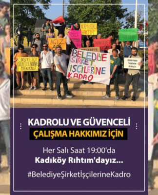 Belediye işçileri “kadrolu ve güvenceli çalışma” talebiyle oturma eylemlerinin 8’inci haftasında bugün Kadıköy’de olacaklar