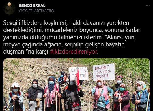İkizdere direnişine bir destek de Genco Erkal’dan geldi