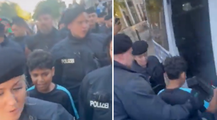Berlin’de Filistin bayrağı tutan çocuk polisler tarafından kovalandı ve gözaltına alındı