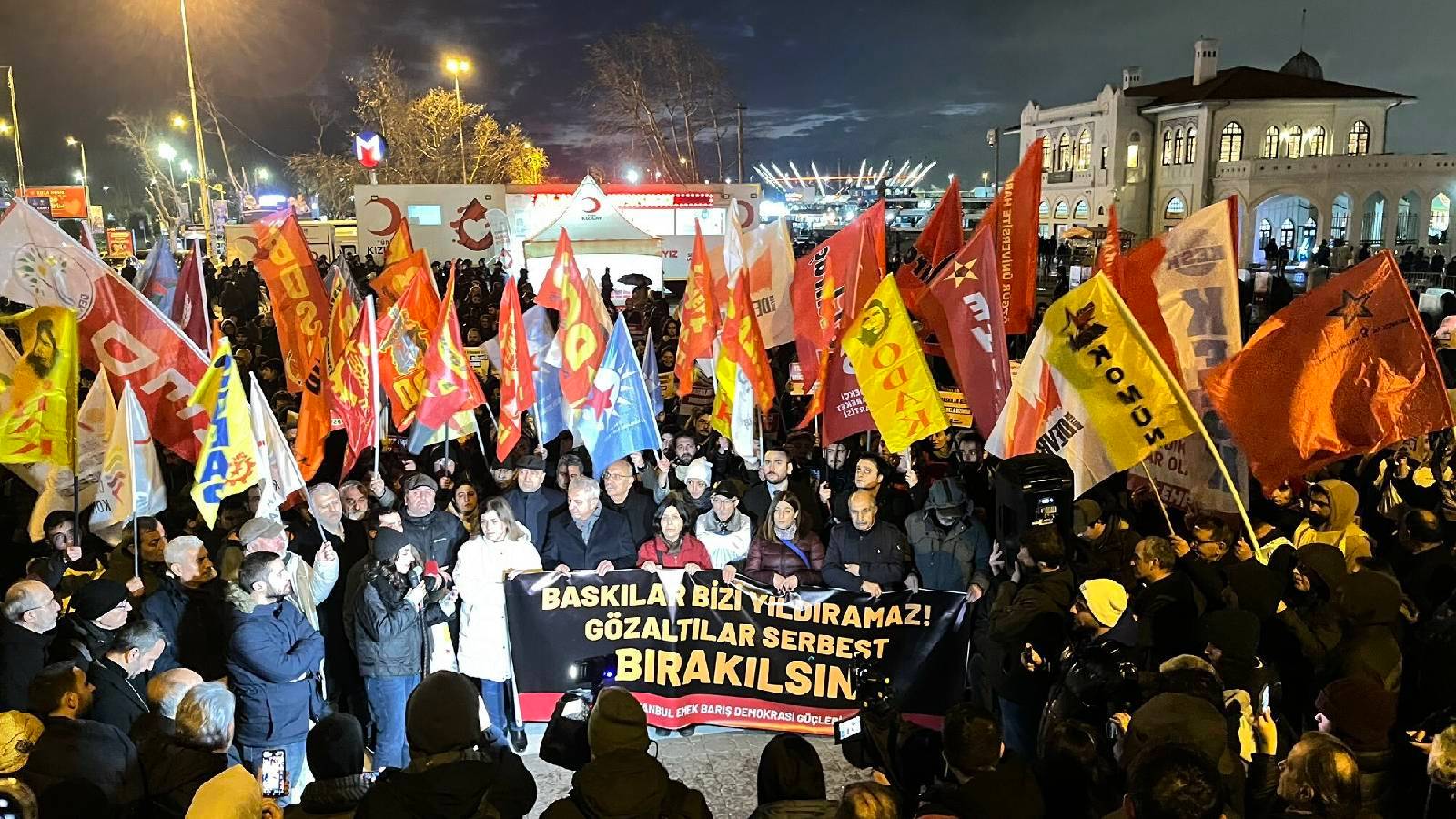 Sabah saatlerinde 10 ilde toplamda 52 kişinin gözaltına alınmasına karşı İstanbul Emek, Barış ve Demokrasi Güçleri Kadıköy İskele Meydanı’nda basın açıklaması yaptı. Gerçekleşen basın açıklamasına DEM Parti Milletvekili Meral Danış, Emek Partisi Genel Başkanı Seyit Aslan, TİP, CHP, DSİP, ODAK, Devrimci Parti ve birçok kurum ve grup katıldı.