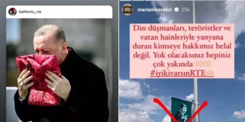Merve Kavakçı’nın kızı ve AKP’li Cumhurbaşkanı Erdoğan’ın danışmalarından Mariam Kavakçı’nın sosyal medya hesabından yaptığı paylaşımlar günün konusu oldu. Kavakçı, Ahmet Davutoğlu’nun fotoğrafını paylaşarak, “Din düşmanları, teröristler ve vatan hainleriyle yan yana duran kimseye hakkımız helal değil. Yok olacaksınız hepiniz çok yakında” ifadelerini kullandı.