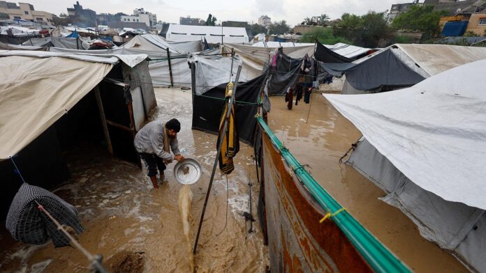 İsrail’in Gazze’de işlediği soykırım nedeniyle Gazze Şeridi’nde geniş alanlar tahrip edildi. Çok sayıda kişi çadırlarda ve geçici barınaklarda yaşamını sürdürmek zorunda bırakıldı. Süregelen şiddetli yağışlar ve kış koşulları, Gazze Şeridi’nde çadır kamplarında yaşayan yüz binlerce yerinden edilmiş kişinin durumunu da daha da kötüleştiriyor. Son günlere ait görüntülerde, kuvvetli rüzgârların çadırları yerinden söküp götürdüğü görülüyor.
