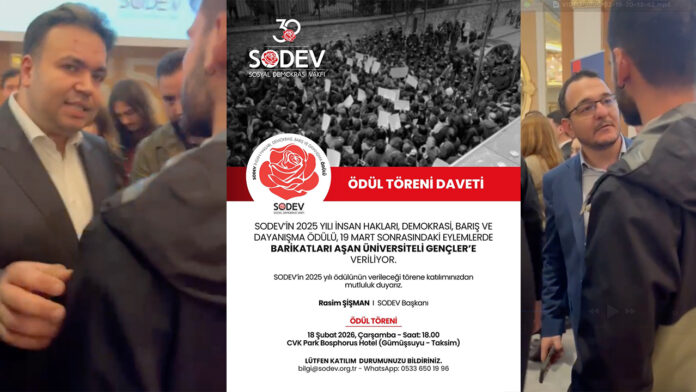 Sosyal Demokrasi Vakfı’nın düzenlediği (SODEV) 2025 yılı İnsan Hakları, Demokrasi, Barış ve Dayanışma Ödülü töreninde Genç Direnişçiler SODEV ve Beşiktaş Belediye Başkanı Rasim Şişman’a yaklaşık 70 gün önce işten atılan ve işine iade edilmek amacıyla Beşiktaş Belediyesi önünde direnen Turan Çil’i sordu.