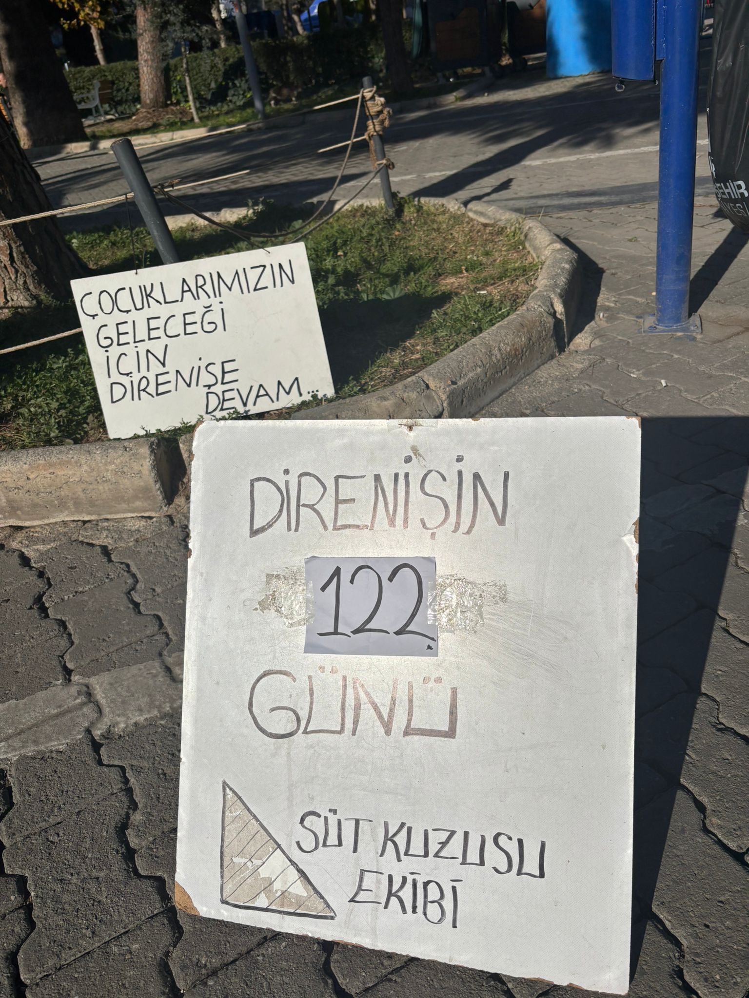 Bugün, İzmir Kültürpark 3. Hol önündeki grev alanında, direnişlerinin 122. gününde olan Süt Kuzusu işçilerine bir ziyaret gerçekleştirdik.
