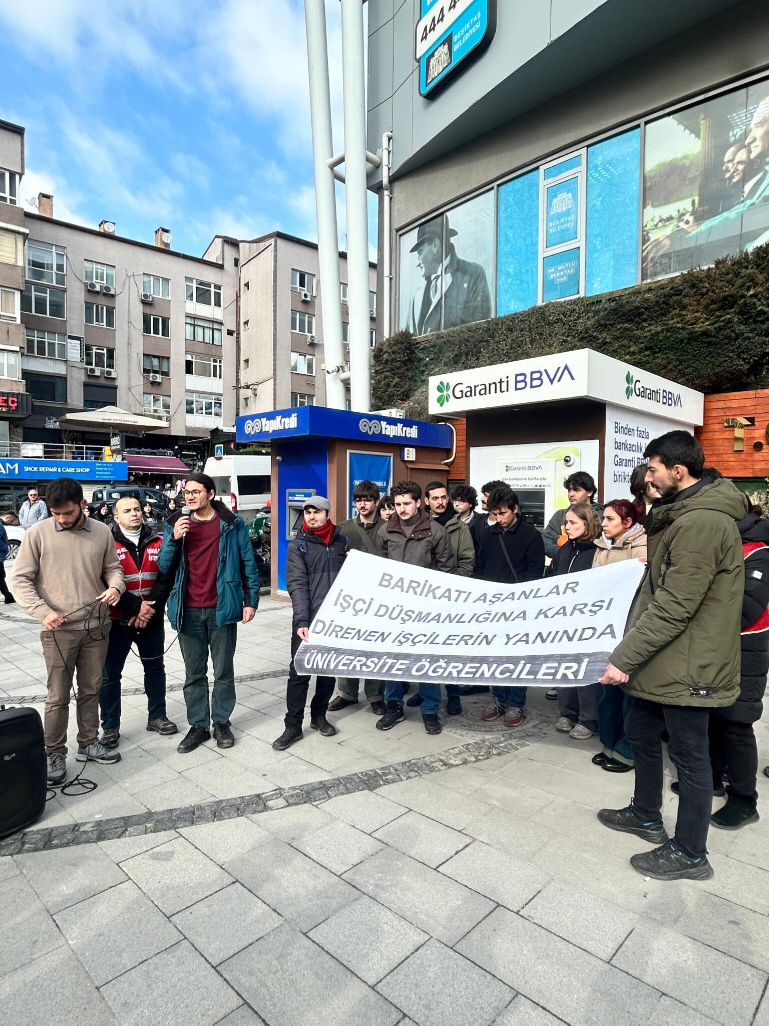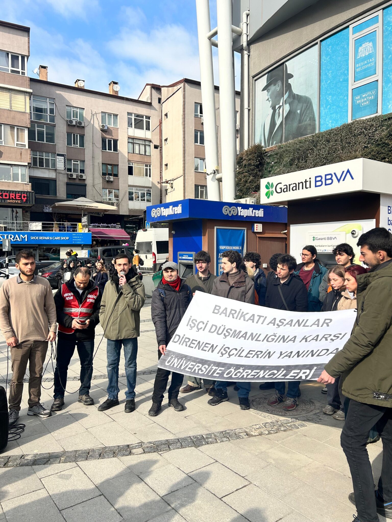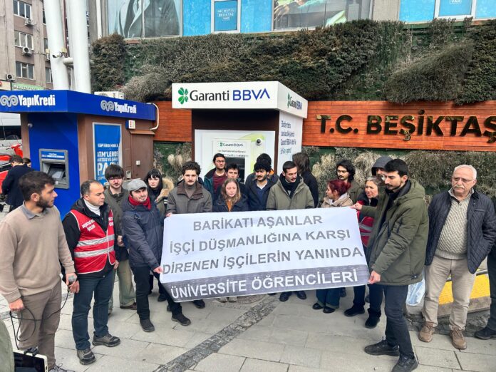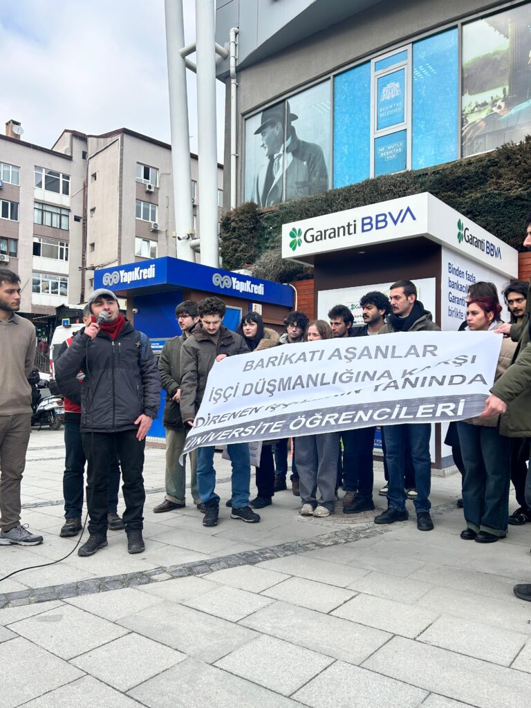 Bizler, 19 Mart’ın barikatları aşan gençliği olarak bugün burada, işçi düşmanlığı yapan SODEV Başkanı ve Beşiktaş Belediye Başkanı Rasim Şişman’a sesleniyoruz. Bu tutumunuzdan vazgeçin, aylardır mağdur ettiğiniz Turan Çil’i işe geri alın.