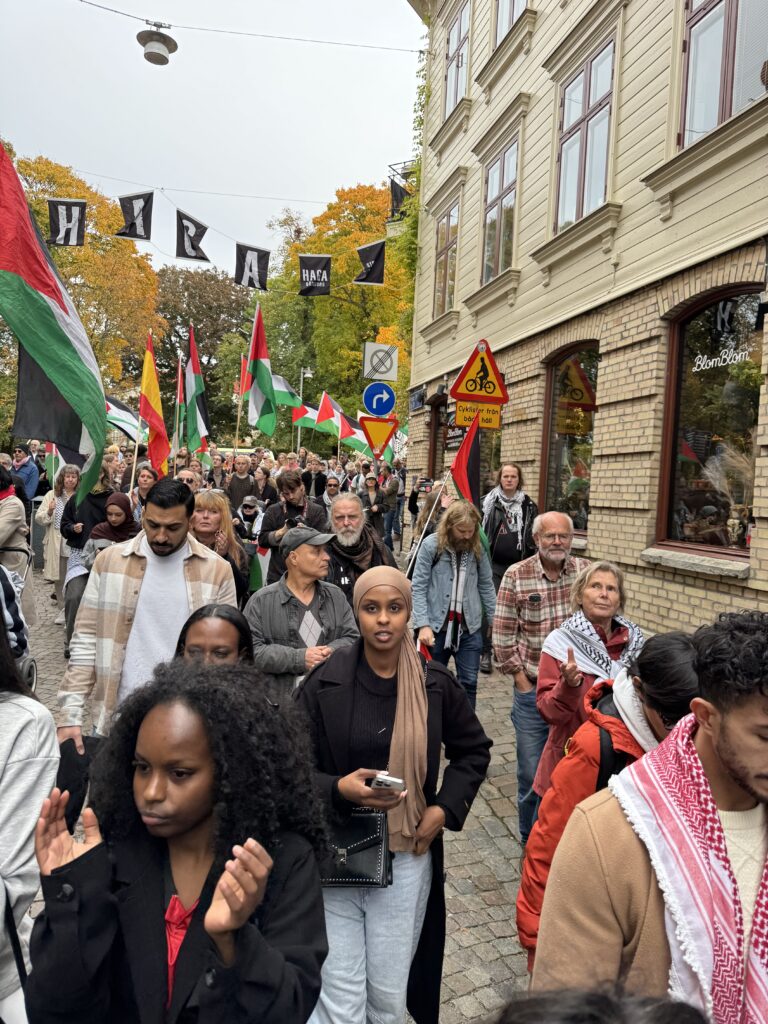 Yürüyüş, Järntorget Meydanı’nda sona erdi. Eylemi düzenleyenler, etkinliklerin her pazar günü saat 14.00’te, Filistin halkı özgürlüğüne kavuşana kadar süreceğini duyurdu.