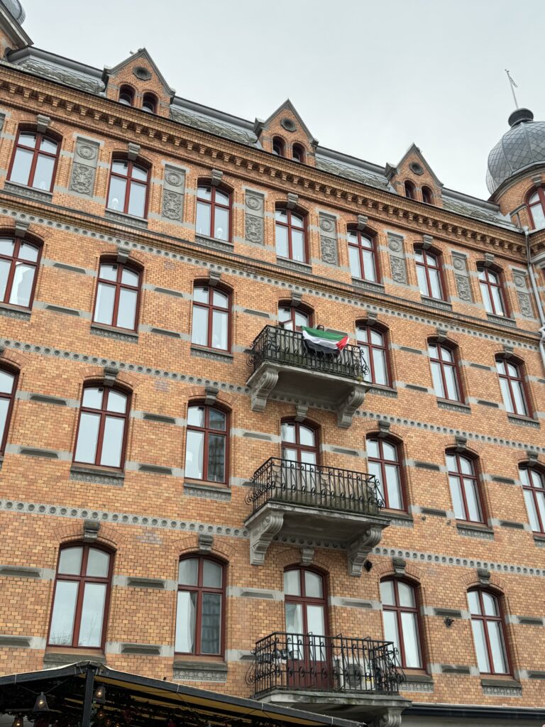 Kafeteryaların ve küçük dükkanların yoğun olduğu Haga Caddesi’nden geçiyoruz. Filistin korteji, davulları, ses yükselticileri ve sloganlarıyla sokakta büyük yer kaplıyor. Hava güneşli ve ılık olduğundan, kafeteryaların önünde müşteriler oturuyor. Kimileri varlığımızdan şaşkın ve huzursuz görünüyor, kimileri ise sevinçli. Yoldan geçenler ve kafeteryalarda oturan müşteriler arasında zafer işareti yapanlar oluyor. Önünden geçtiğimiz binalardaki bazı evlerin pencerelerinden Filistin bayrağı dalgalandırılıyor.