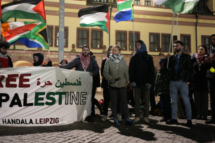 Almanya’nın Leipzig kentinde düzenlenen Filistin’e destek eylemine, dünyaca ünlü iklim aktivisti Greta Thunberg de katıldı. Eylemde konuşan Thunberg, Filistin halkıyla dayanışmanın önemine vurgu yaparak, şu ifadelere yer verdi: