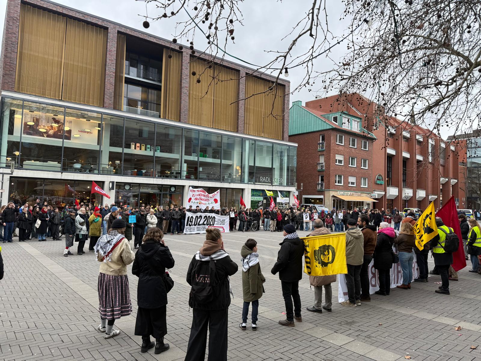 Almanya’nın üniversite kenti Münster’de, Hanau katliamının 6. yılında “Hanau münferit bir olay değildir, her yerde direniş” başlıklı bir eylem düzenlendi.