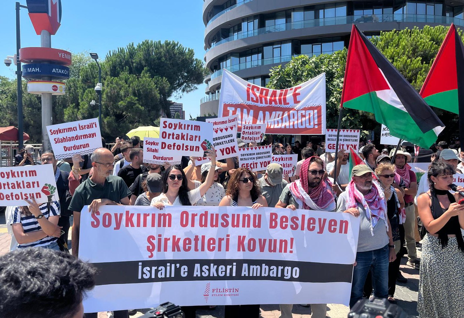 Filistin Eylem Komitesi, İsrail’e silah ve mühimmat sağlayan şirketlerin yer aldığı gerekçesiyle 17. Uluslararası Savunma Sanayii Fuarı’nı (IDEF) protesto etti. Atatürk Havalimanı önünde yapılması planlanan eylem, İstanbul Valiliği’nin fuar çevresindeki metro seferlerini durdurma kararı üzerine Yenibosna Metro İstasyonu önünde gerçekleştirildi.