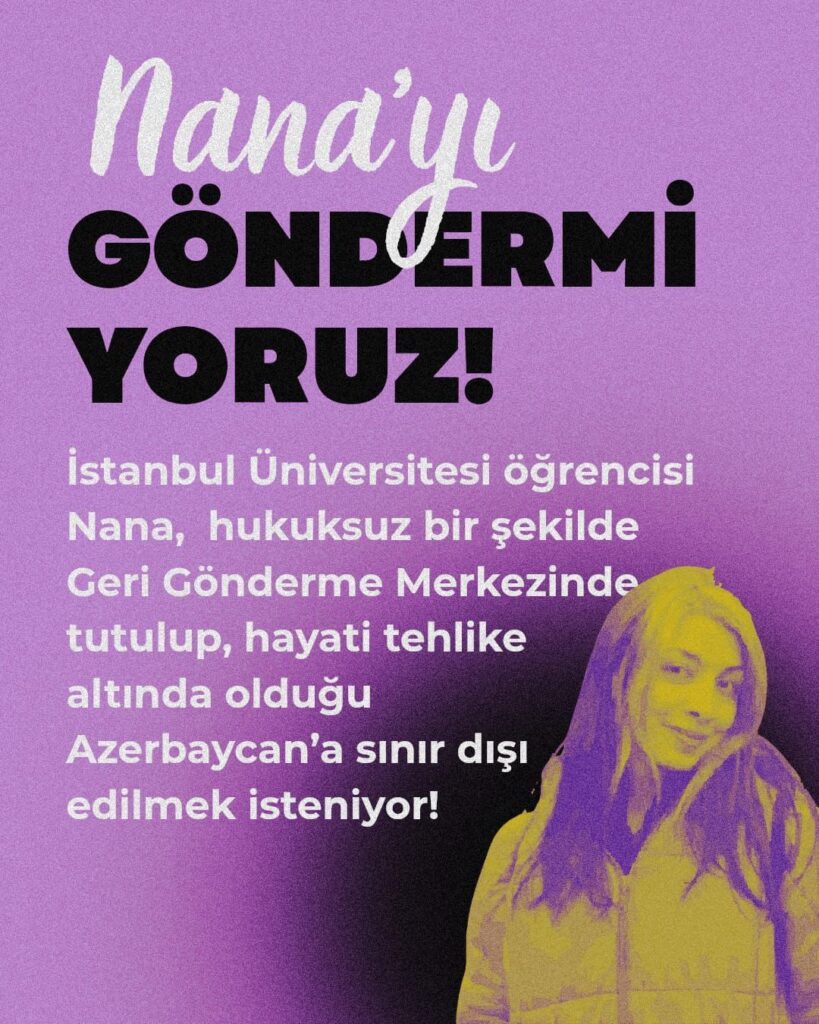 Azerbaycan’da ailesi tarafından tehdit edildiği bilinen Babazade’nin ülkesine gönderilmesi halinde ciddi bir hayati tehlikeyle karşı karşıya kalabileceği ifade ediliyor. Öğrenci çevreleri, “Sıra arkadaşımızı yalnız bırakmayacağız” diyerek Nana için dayanışma çağrısında bulundu.