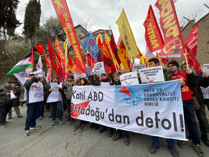NATO ve Emperyalist Savaş Karşıtı Birlik, Amerikan emperyalizmine ve İsrail siyonizmine karşı ABD Konsolosluğu’na yürüyüş gerçekleştirdi.