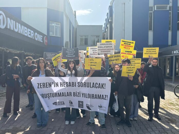 “Bugün Zeren Ertaş’ın ölüm yıldönümü. 2 yıl önce bugün Aydın’da KYK’da düşen asansörde öldü Zeren. Zeren’in adı, barınamayan, geçinemeyen, sesini duyurmak istediğinde baskıya uğrayan binlerce öğrencinin adıyla birleşti. Zeren’in ölümünden sonra yapılan soruşturmalarda, asansörün aylarca arızalı olduğu, bakım raporlarının eksik tutulduğu ve öğrencilerin defalarca şikâyette bulunduğu ortaya çıktı. KYK yönetimleri, asansörleri onarmak yerine, o günden bu yana öğrencilerin sesini susturmaya çalıştı. O yüzden susmuyoruz. Bugün Zeren’in ölüm yıldönümünde, onu “kazada öldü” diyerek anmayı reddediyoruz. Biliyoruz ki bizlerin katili bu sistemdir. Bugün bize düşen hesap sormak, isyan etmek ve bu düzeni yıkmaktır. Biz KYK’larda bize ölümü reva görmelerini kabul etmiyoruz. Yaşamak okumak istiyoruz diyerek kampüsü isyanımızla dolduruyoruz.”