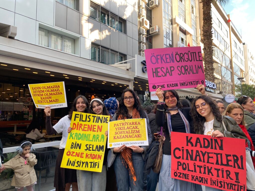 “8 Mart; işçi ve emekçi kadınların eşitlik, özgürlük ve insanca yaşam talebiyle yaktığı direniş meşalesinin bugün bizim ellerimizde sömürüye ve şiddete karşı dev bir isyana dönüştüğü mücadele günüdür. Bu sönmeyen ateşi bugün fabrikalardan sokaklara, direniş çadırlarından kampüsleretaşıyan biz kadınlar emeğimize, bedenimize, yaşamlarımıza yönelen topyekün saldırılara karşı tek ses tek yüreğiz.