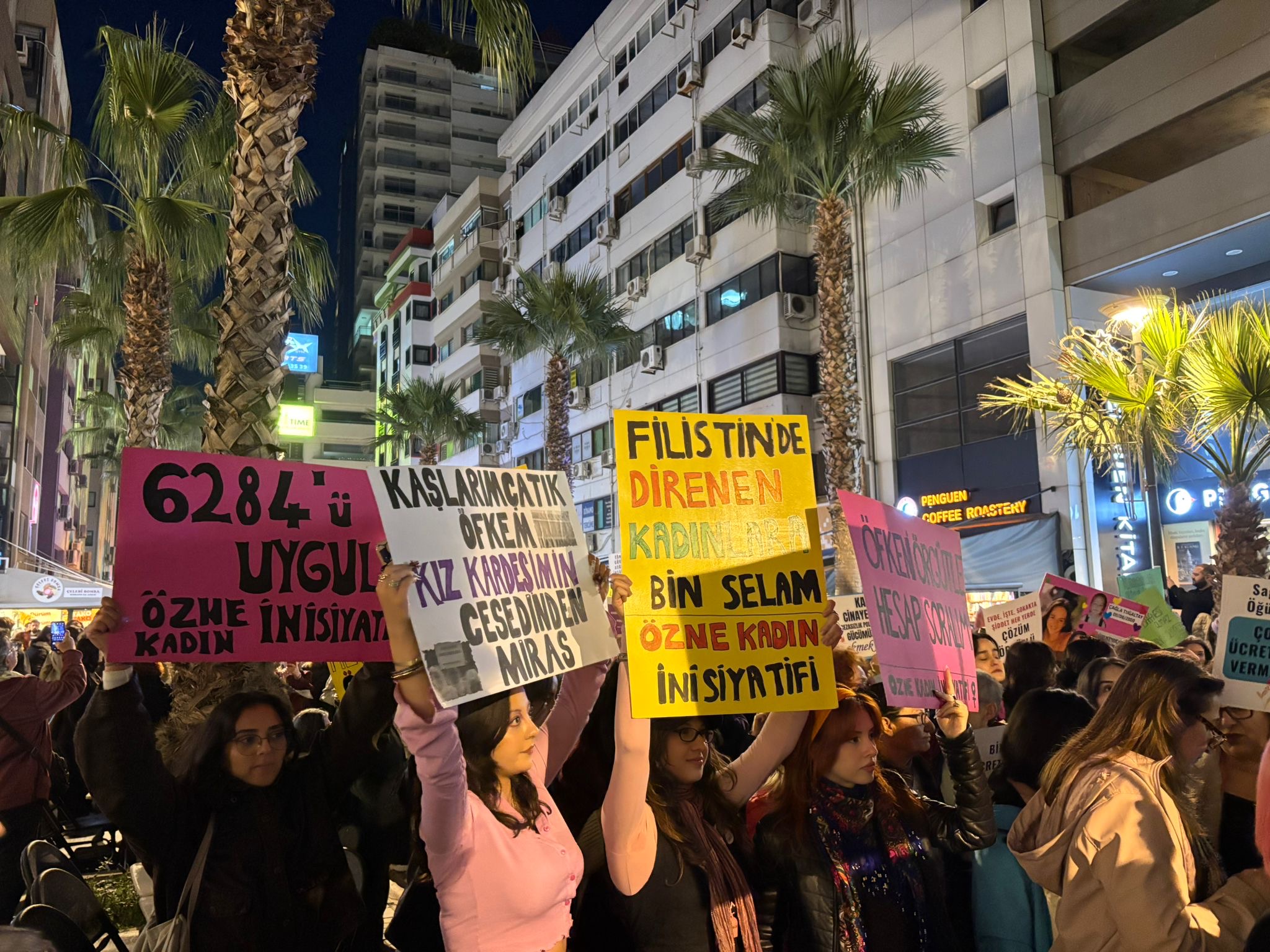 25 Kasım Kadına Yönelik Şiddete Karşı Uluslararası Mücadele Gününde Kadınlar Alsancak’ta, Penguen Kitabevi önünden Türkan Saylan Kültür Merkezi önüne yürüyüş gerçekleştirdi.