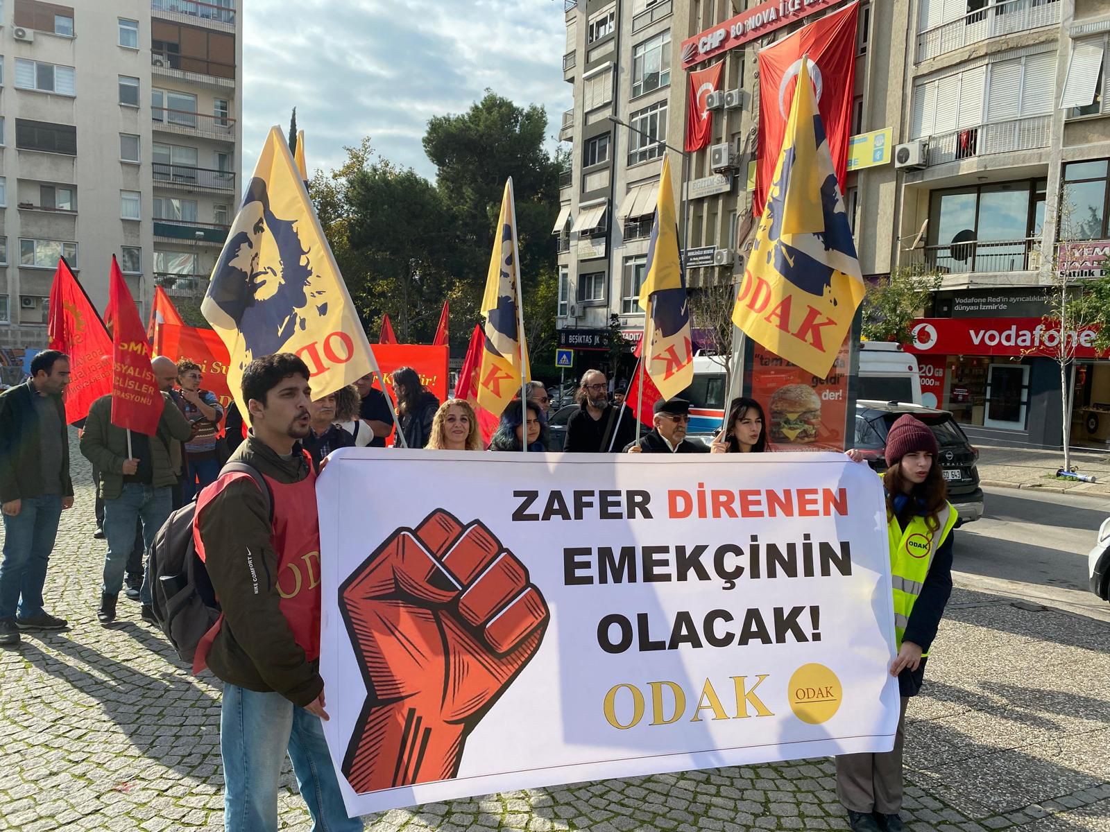 Bugün İzmir’de “açlığa, yoksulluğa, sefalet ücretlerine karşı” bir araya gelen işçiler, emekçiler ve emekliler Bornova’da saat 13.00’de buluştu. Düzenlenen eylem, geçtiğimiz sene düzenlenen İşçi-Emekçi-Emekli Buluşması’nın ikincisi niteliğindeydi. Cumhuriyet Meydanı’nda yapılan mitingi aralarında Odak’ın da bulunduğu çeşitli sol gruplar örgütledi.