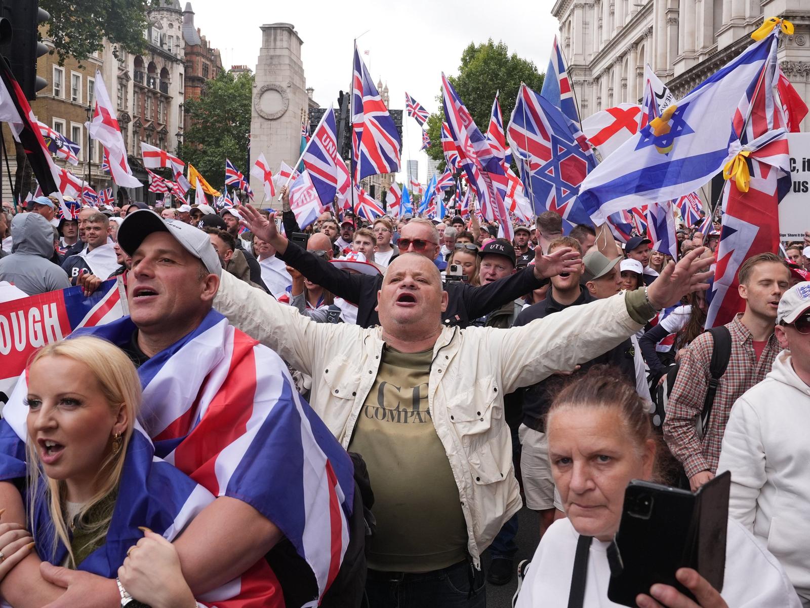 İngiltere’nin başkenti Londra’da aşırı sağcı Tommy Robinson’un çağrısıyla düzenlenen göçmen karşıtı gösteri, on binlerce kişinin katılımıyla bir gövde gösterisine dönüştü. Polisle göstericiler arasında arbede yaşanırken en az 25 kişi gözaltına alındı.