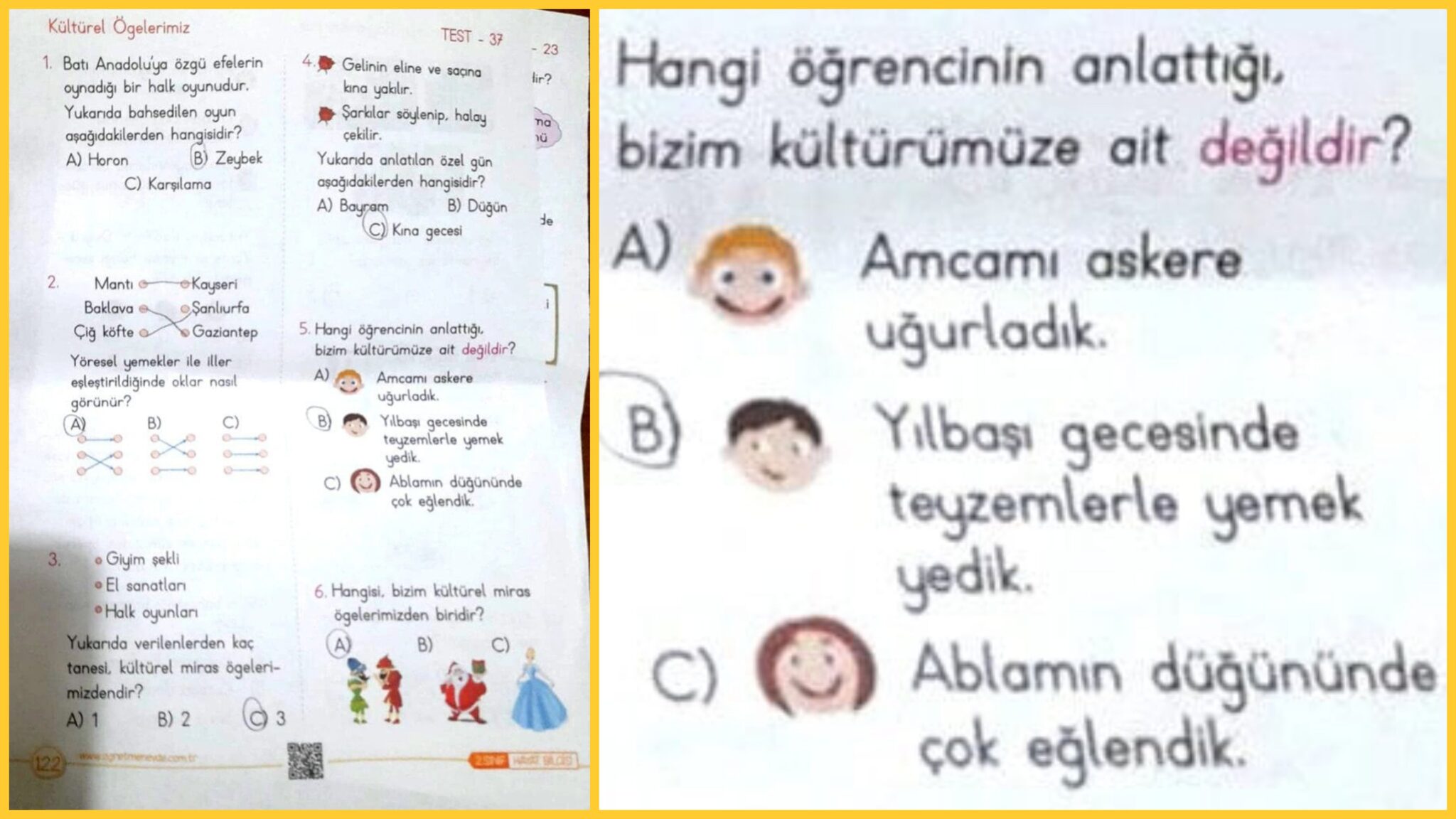 “Soru: Hangi öğrencinin anlattığı, bizim kültürümüze ait değildir?