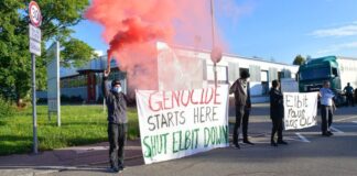 Almanya’da İsrailli savunma şirketi Elbit Systems’in önünde eylem