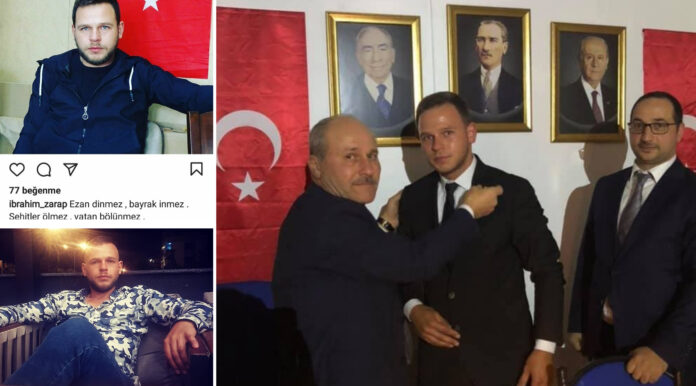 Zarap’ın AKP-MHP ittifakının bir parçası olduğu, MHP’ye üye olduğu, Alpaslan Türkeş, Devlet Bahçeli ve Recep Tayyip Erdoğan’ın resimleri önünde görüntüler çekip sosyal medyasında paylaştığı ortaya çıktı.