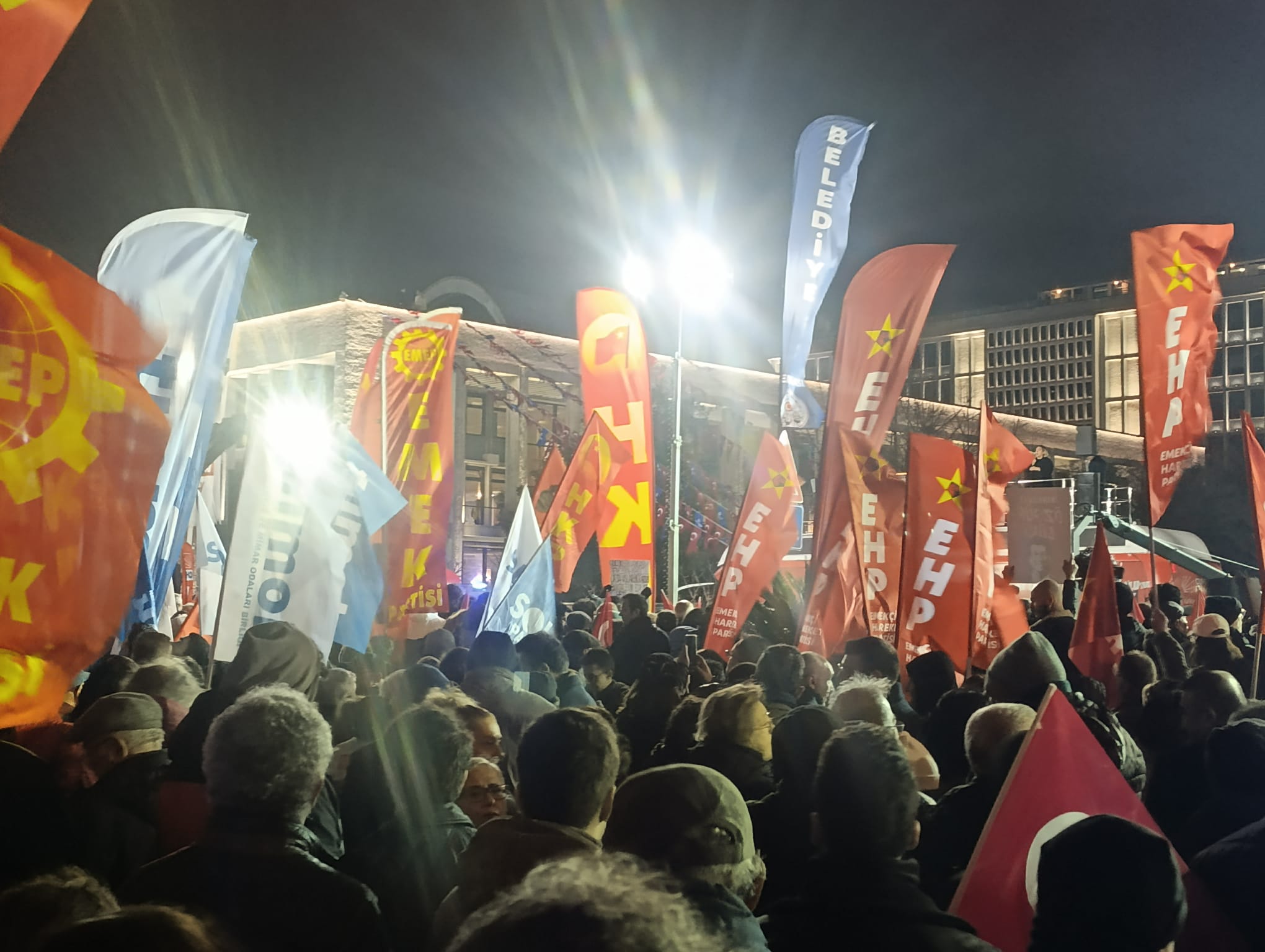 Miting alanında siyasi partilerin ve sendikaların temsilcileri de yer aldı. Saadet Partisi, İYİ Parti, TKP, TİP, HKP, EMEP ve Sol Parti’nin İstanbul il başkanları sahneye davet edilerek katılımcılarla selamlaştırıldı.