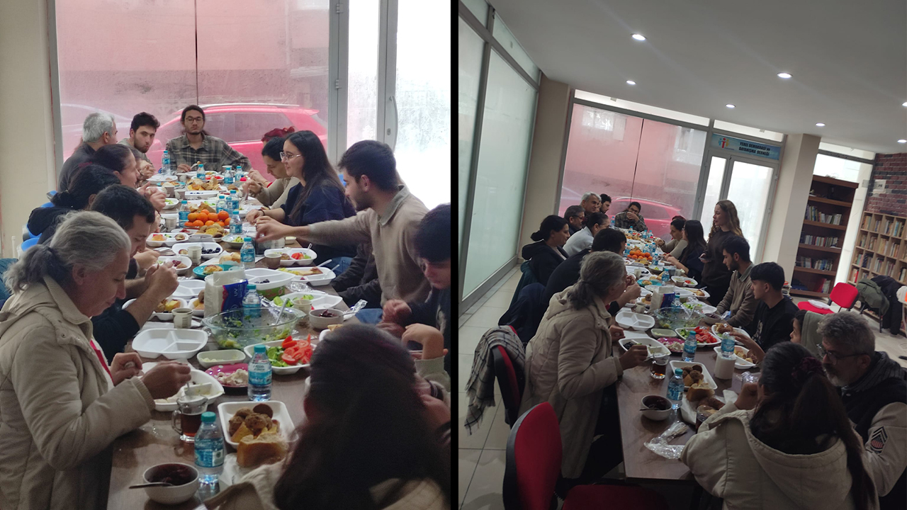 Kahvaltımıza katılan arkadaşlarımız kendi hazırladıkları yiyecekleri de beraberinde getirdi. Yapılan kısa giriş konuşmasının ardından ortak soframızda kahvaltımızı gerçekleştirdik.