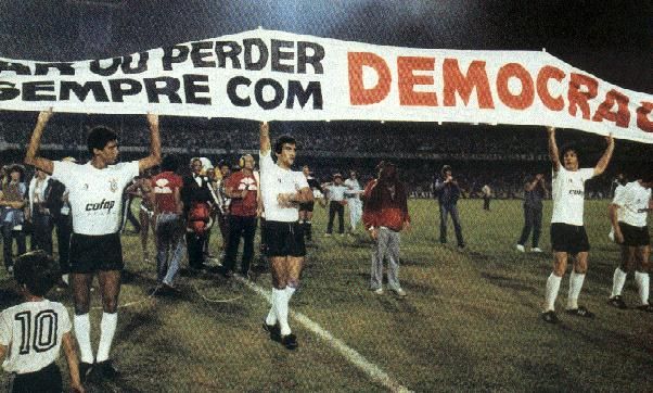 18 yıllık dikta rejiminde göstermelik seçimler olsa da bu seçimlerde seçilen başkanların tamamı generallerdi. Halk bunu bildiğinden, seçimlere riayet etmiyordu. Sandığa gitme oranı yüzde 30’lara kadar düşmüştü. Sócrates maç sonu konuşmalarında asgari ücretin artırılması gerektiğine, ilaçların ücretsiz olmasına ve bunun gibi toplumsal sorunlara dikkat çekiyordu. Corinthians’ın artık öncü takım olma zamanı gelmişti! Böylece bir maça üzerinde “DEMOKRASİ” yazan bir pankartla çıkıldı. Cunta rejimi hızlıca takımı aradı ve bu işe son verilmesini istedi. Buna rağmen başkan, kendisini arayanlara takımda kararların demokrasi ile alındığını, oyuncuların kendisini dinlemeyeceğini söylemişti. Pankartın cezalandırılması üzerine ise takım bu sefer de üzerinde “DEMOKRASİ” yazan formalarla sahaya çıktı.