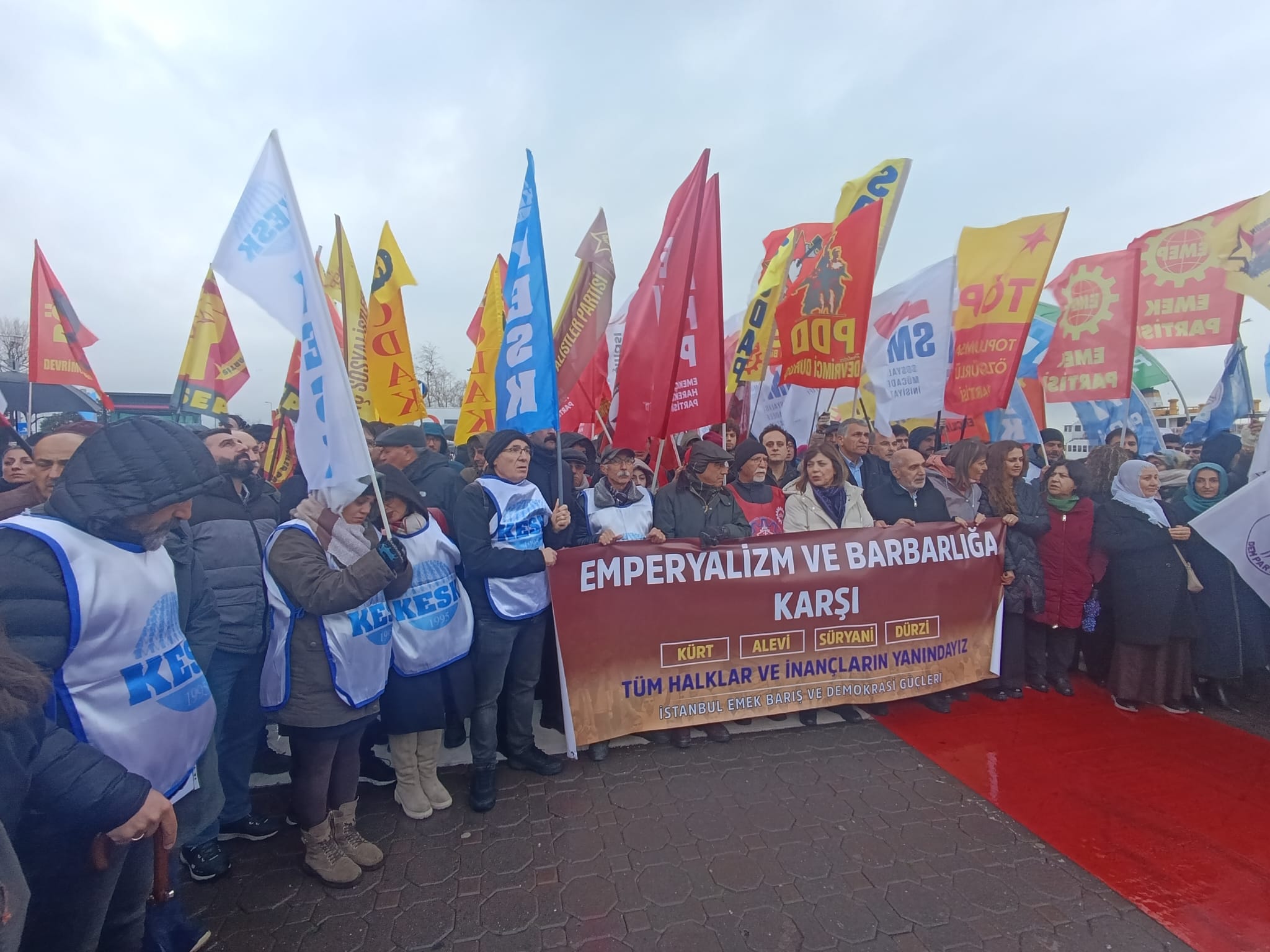 İstanbul Emek, Barış ve Demokrasi Güçleri’nin çağrısı ile 17 Ocak Salı günü saat 16:00’da Kadıköy Rıhtım’da Suriye’de Kürt, Alevi, Süryani ve Dürzi halklara dönük saldırılara karşı basın açıklaması gerçekleşti.