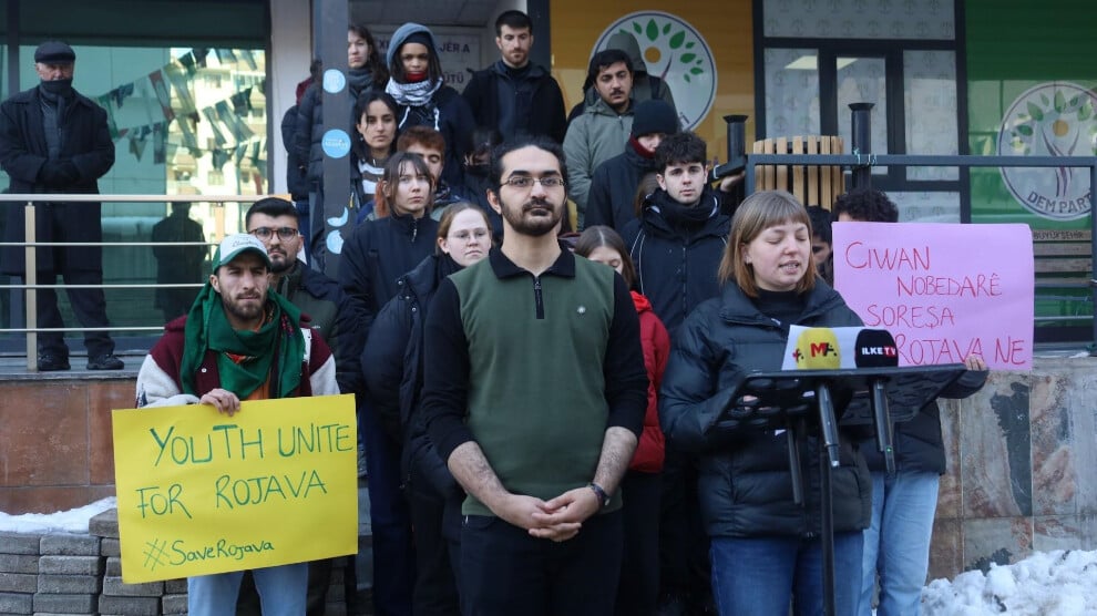 Mardin kenti yakınlarında, Avrupa’dan gelen uluslararası bir delegasyon Türk polisi tarafından gözaltına alındı. Basında yer alan bilgilere göre, aralarında gazeteciler ile çeşitli Avrupa ülkelerinden demokratik gençlik örgütlerinin temsilcilerinin bulunduğu 16 kişilik delegasyonun, Rojava’ya yönelik saldırılara karşı düzenlenen protestolara eşlik ettiği öğrenildi. Gözaltına alınan delegasyon üyelerinin sınır dışı edilmesinin gündemde olduğu belirtiliyor.